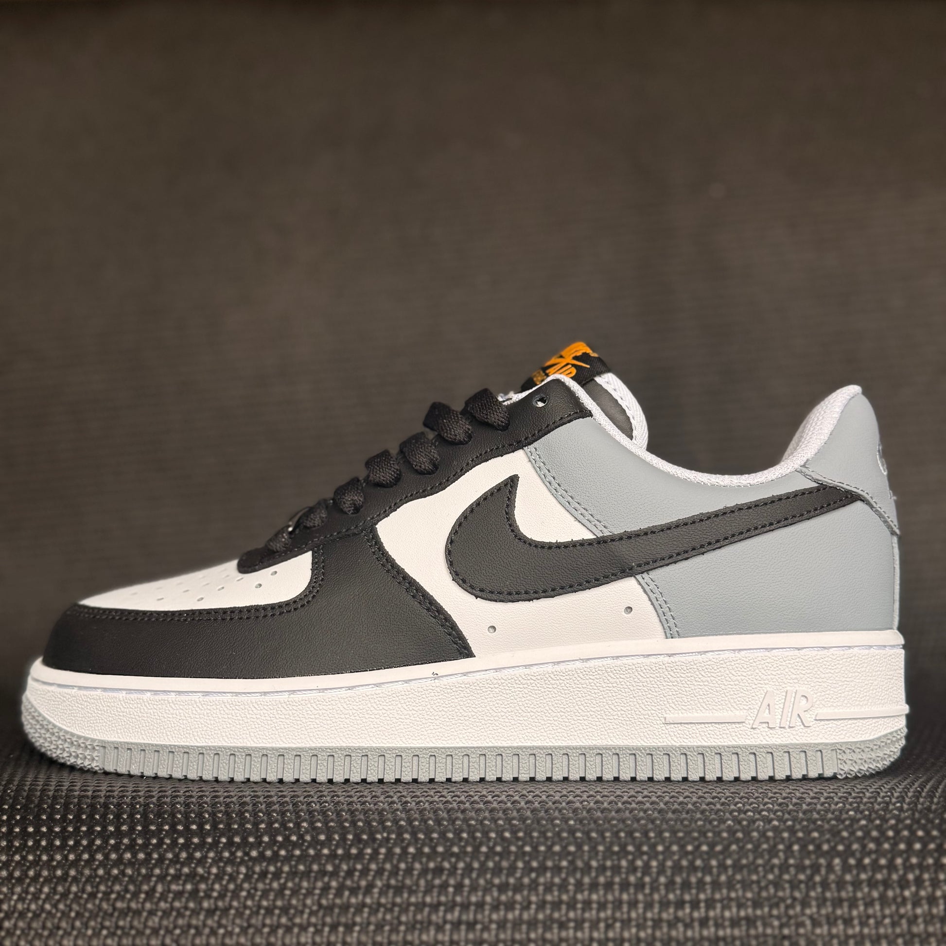 Elevate your sneaker game with our custom Black/Grey Oreo AF1-Style shoe. This sleek design features a mix of neutral tones, including white leather and charcoal and medium-grey overlays, accented by a bold black Swoosh. The textured grey outsole and classic AF1-style paneling add a premium touch to this everyday staple. Stay stylish and versatile with our custom creation.