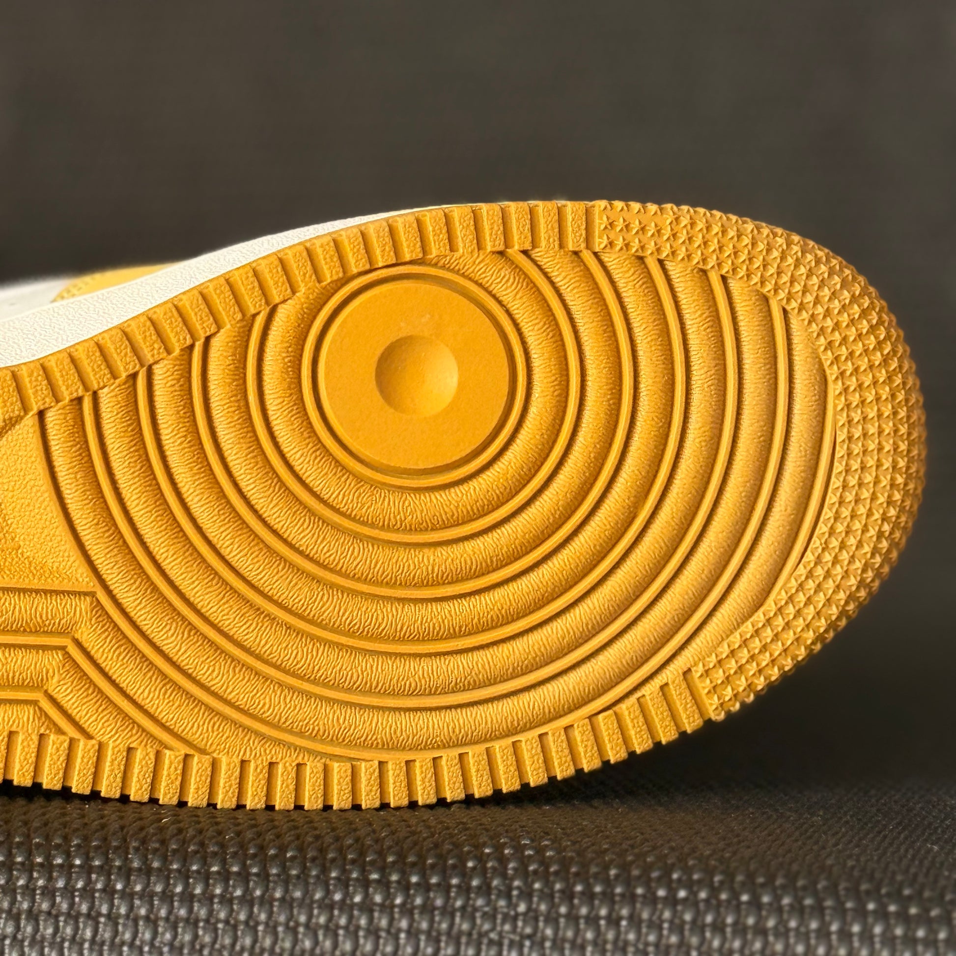 Experience ultimate style and comfort with the Nike Air Force 1 Low “Tour Yellow”. Featuring a smooth leather upper, matching cream Nike Swoosh, and classic Air Force 1 details, this low-top sneaker is a must-have. The yellow overlays and cream panels add a pop of color, while the solid yellow outsole ties the whole look together. Embrace the traditional AF1 look with a bright twist.